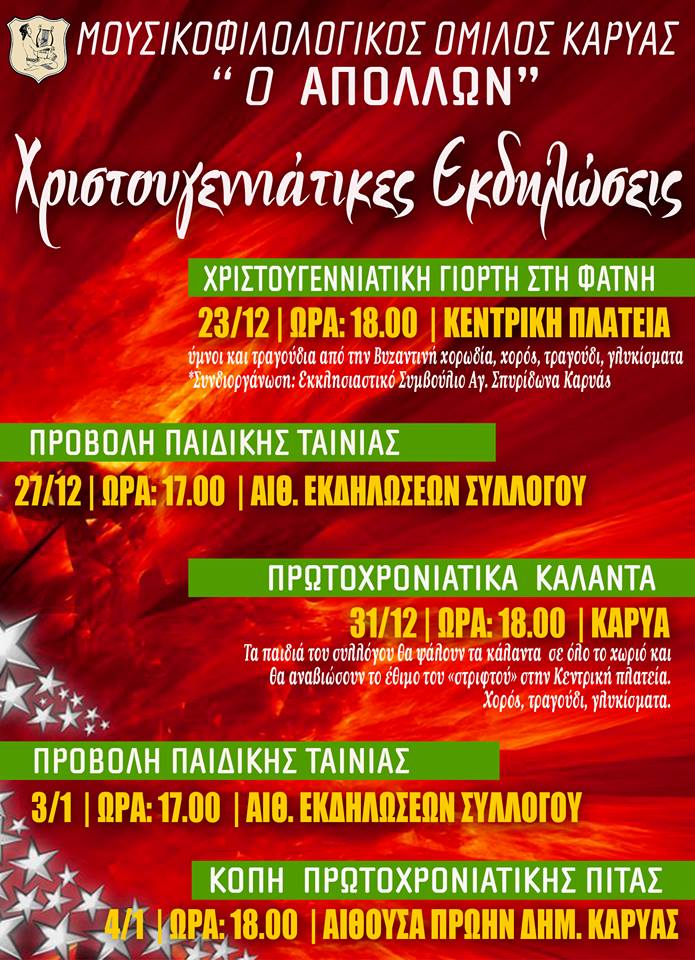 ΟΙ ΧΡΙΣΤΟΥΓΕΝΝΙΑΤΙΚΕΣ ΕΚΔΗΛΩΣΕΙΣ ΤΟΥ ΑΠΟΛΛΩΝΑ ΚΑΡΥΑΣ Κοινοποιήστε: Μοιραστείτε στο X(Ανοίγει σε νέο παράθυρο) Χ Mοιραστείτε στο Facebook(Ανοίγει σε νέο παράθυρο) Facebook Εκτύπωση(Ανοίγει σε νέο παράθυρο) Εκτύπωση Στείλε ένα σύνδεσμο σε έναν φίλο(Ανοίγει σε νέο παράθυρο) Email Μου αρέσει! Φόρτωση... Δημοσιεύθηκε από mxfon Δείτε όλα τα άρθρα του/της mxfon
