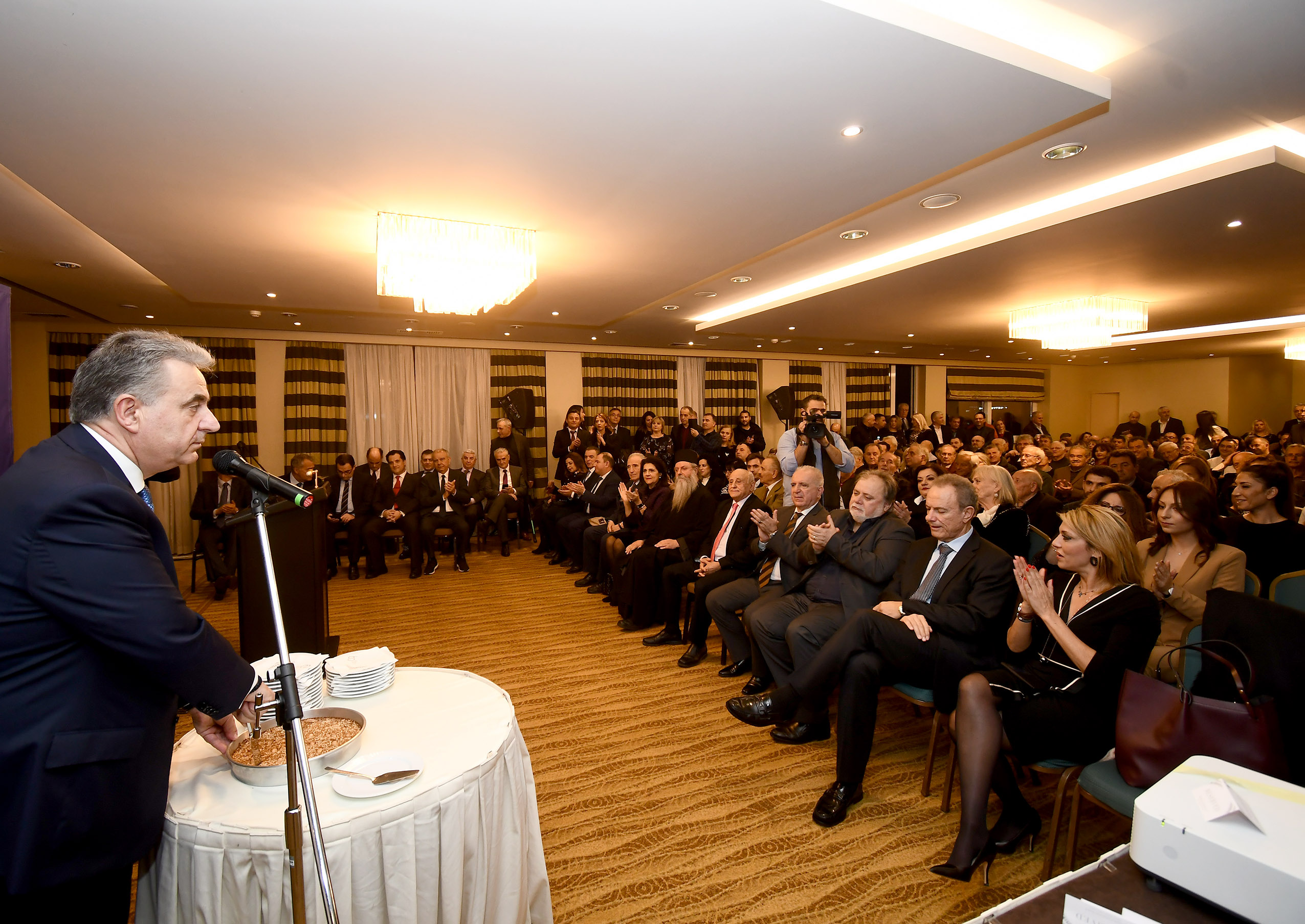 Τον βουλευτή τίμησαν με την παρουσία τους εκατοντάδες Λευκαδίτες της Αττικής αλλά και Λευκαδίτες που ήρθαν στην Αθήνα, βουλευτές, στελέχη της Πολεμικής αεροπορίας, φίλοι και γνωστοί ενώ την πίτα ευλόγησε ο Πανοσιολογιότατος ηγούμενος της Ιεράς Μονής Παναγίας της Φανερωμένης κ. Νικηφόρος, εκπροσωπώντας τον Σεβασμιότατο Μητροπολίτη Λευκάδος και Ιθάκης κ. Θεόφιλο.