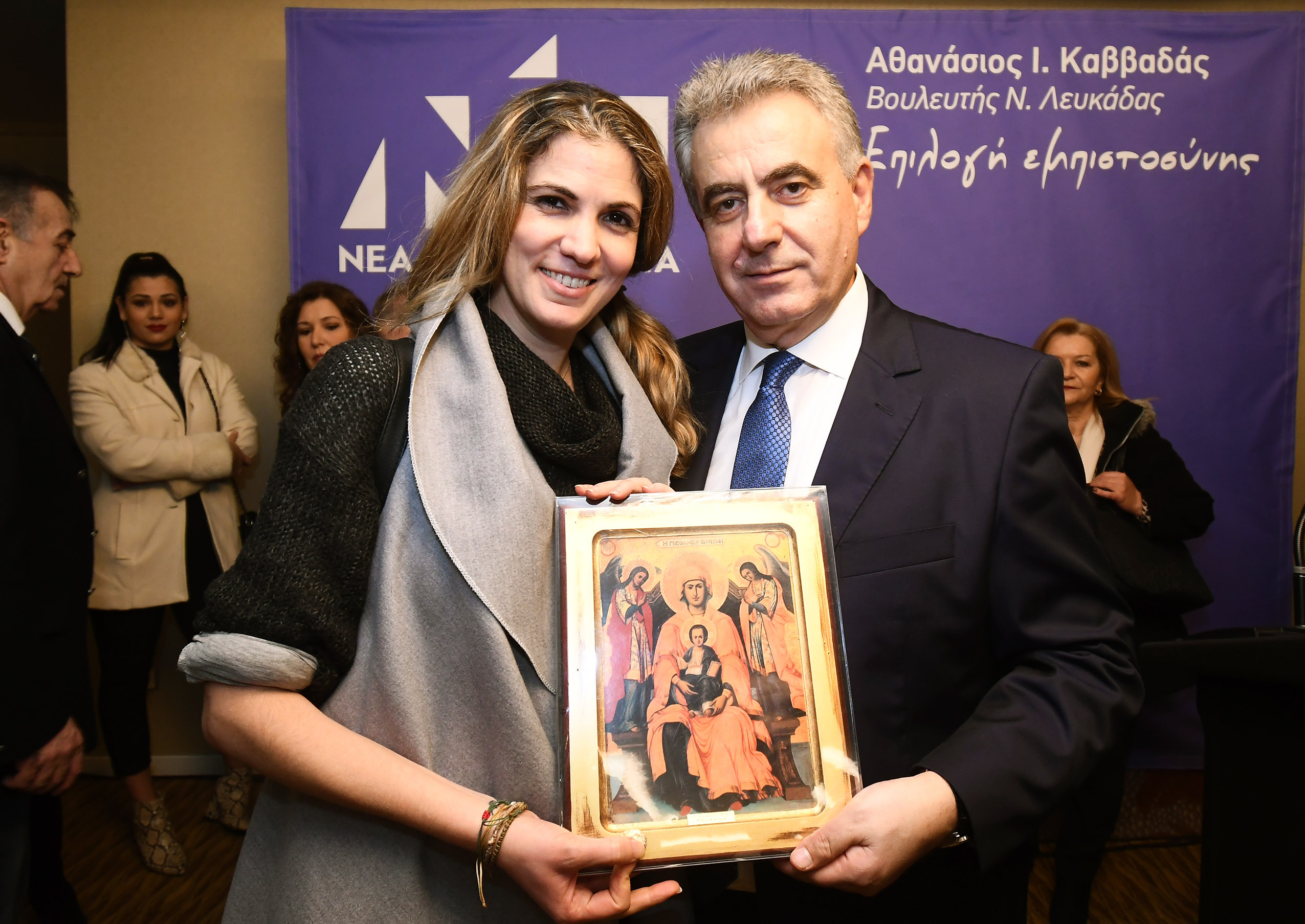 Στην εκδήλωση του κ. Καββαδά αναγνώστηκαν χαιρετισμοί του πρώην Πρωθυπουργού και πρόεδρου της Νέας Δημοκρατίας Αντώνη Σαμαρά, και του πρώην πρόεδρου του κόμματος Βαγγέλη Μεϊμαράκη. Σύντομους χαιρετισμούς απηύθυναν ο Αντιπρόεδρος της Ν.Δ Άδωνης Γεωργιάδης, η υποψήφια με την στήριξη της ΝΔ, Περιφερειάρχης Ιονίων Νήσων Ρόδη Κράτσα, ο υποψήφιος επίσης με τη στήριξη της Ν.Δ. Δήμαρχος Λευκάδας Θεόδωρος Σολδάτος και ο πρόεδρος της ΝΟΔΕ Λευκάδας Γεώργιος Μπουρδάρας.