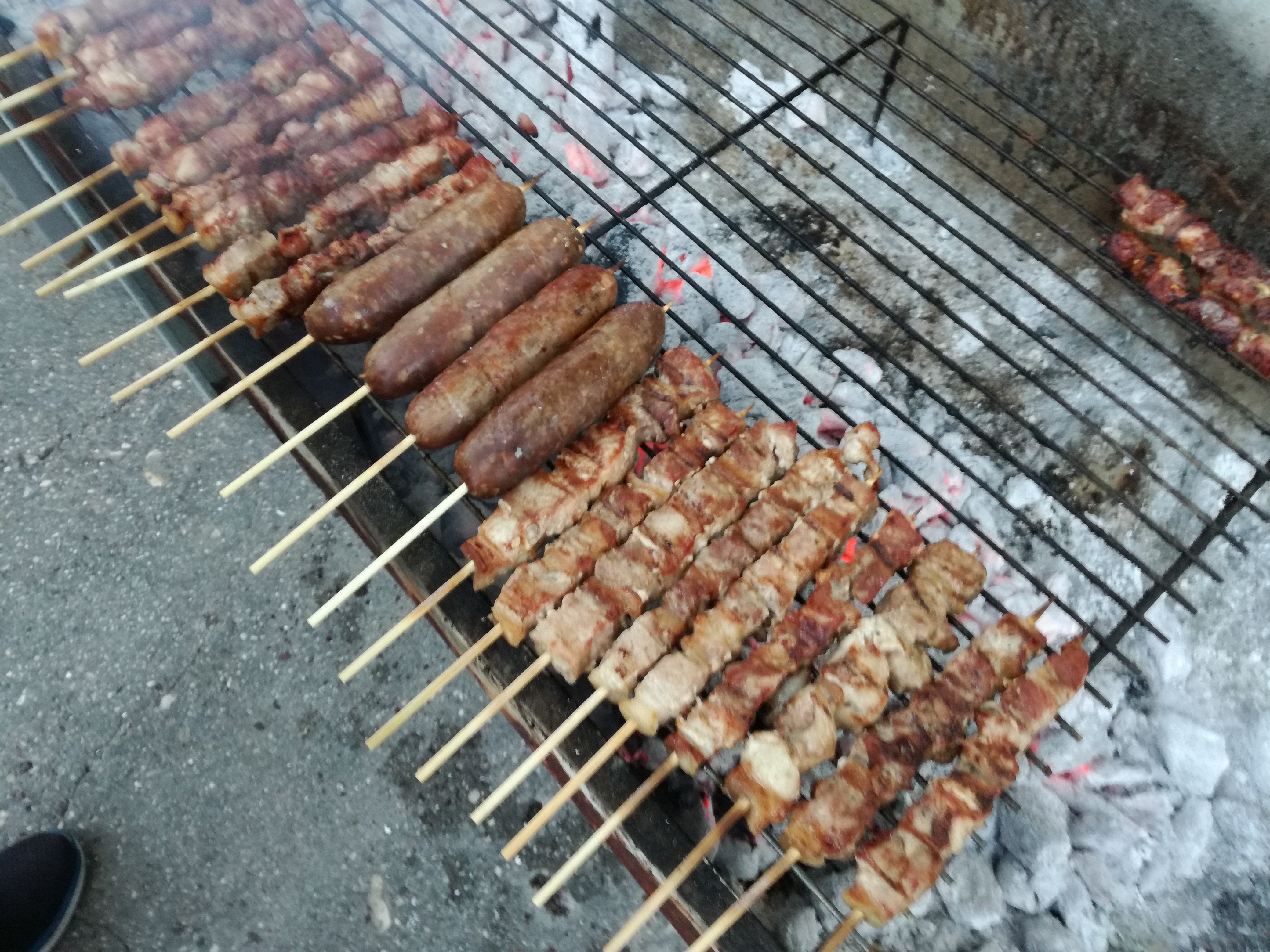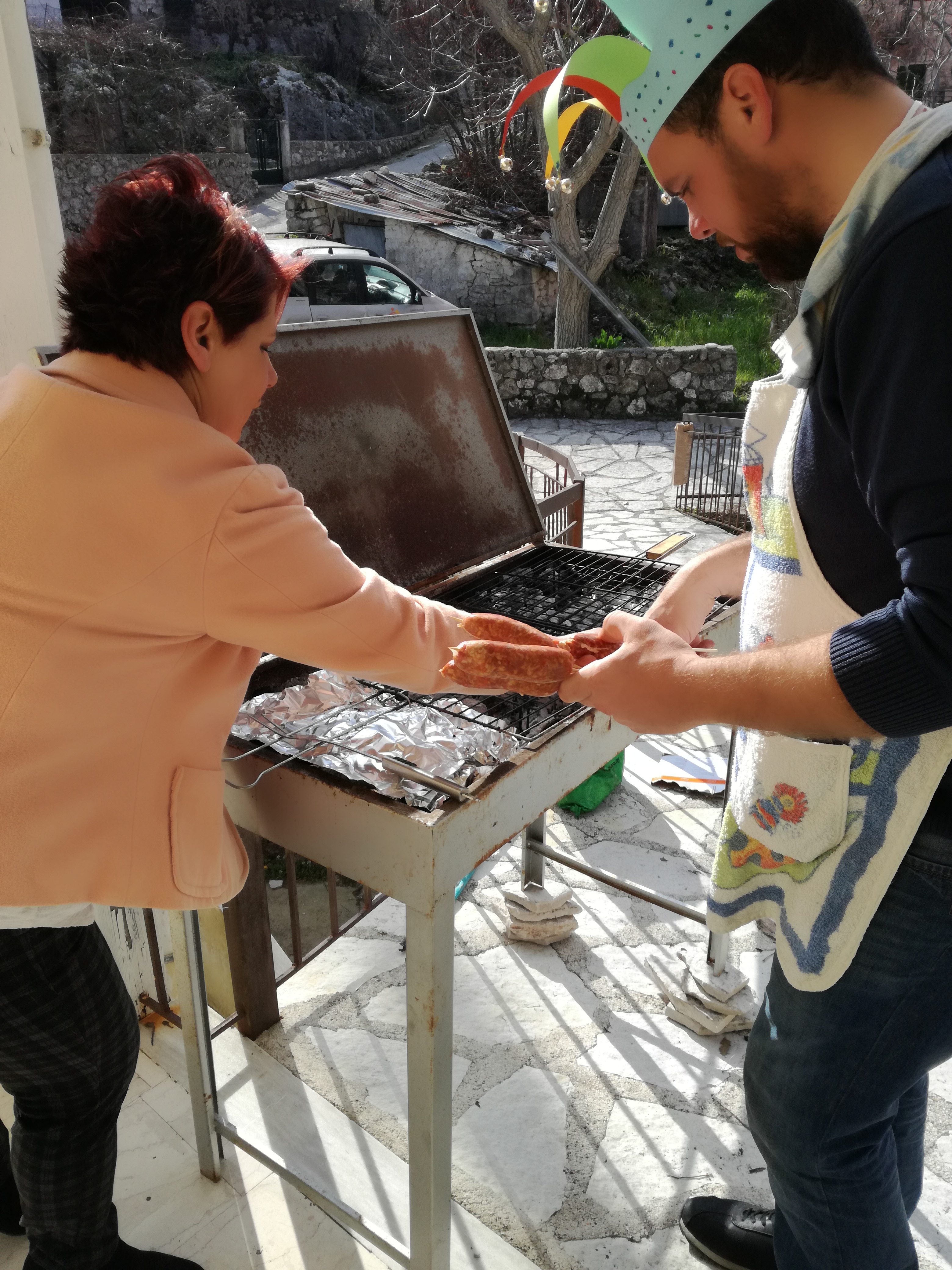 Νωρίς το απόγευμα πήραν “φωτιά” οι ψησταριές. Ο Αποστόλης και η Χριστίνα με δυο τεράστιες ψησταριές έψηναν και κέρναγαν χωριανούς και επισκέπτες με χαμόγελο και πειράγματα.