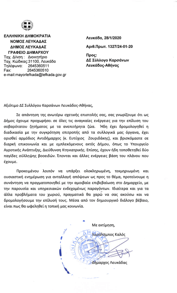 Απάντηση του Συλλόγου Καρσάνων Λευκάδος στον κ. Δήμαρχο Λευκάδος για το θέμα με τα ανεπιτήρητα παραγωγικά ζώα στη Λευκάδα