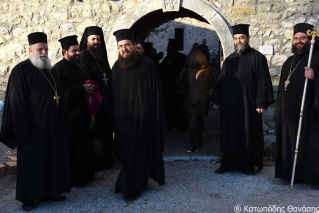 Το απόγευμα της Δευτέρας, 17 Φεβρουαρίου 2020 και ώρα 5.00 μ.μ. τελέσθηκε στην ιστορική Ιερά Μονή Αγίου Ιωάννου Προδρόμου στο Λιβάδι της Καρυάς Αρχιερατικός Εσπερινός, χοροστατούντος του Σεβασμιωτάτου Ποιμενάρχου μας κ. Θεοφίλου. Στην συνέχεια ο Σεβασμιώτατος Μητροπολίτης μας ευλόγησε την αγιοβασιλόπιτα της Ι. Μονής, παρουσία κληρικών της Ιεράς μας Μητροπόλεως και ευσεβών προσκυνητών και πραγματοποιήθηκε η κλήρωση της λαχειοφόρου, τα έσοδα της οποίας θα διατεθούν υπέρ των έργων αναστηλώσεως της ιστορικής Ι. Μονής. Αφού έγινε μια σύντομη αναδρομή στην ιστορική πορεία της Ιεράς Μονής υπό του Πανοσιολ. Αρχιμανδρίτου π. Ιωαννικίου Ζαμπέλη, ο Σεβασμιώτατος ευχαρίστησε προσωπικώς τους κληρικούς και λαϊκούς εθελοντές καθώς και όλους όσους προσέφεραν τον οβολό τους για το σκοπό αυτό και ευχήθηκε η Ιερά Μονή να αποκτήσει σύντομα την παλιά της αίγλη.