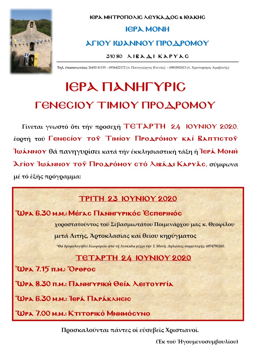 Πανήγυρις Ι. Μονής Αγίου Ιωάννου Προδρόμου στο Λιβάδι – 24 Ιουνίου Κοινοποιήστε: Μοιραστείτε στο X(Ανοίγει σε νέο παράθυρο) Χ Mοιραστείτε στο Facebook(Ανοίγει σε νέο παράθυρο) Facebook Εκτύπωση(Ανοίγει σε νέο παράθυρο) Εκτύπωση Στείλε ένα σύνδεσμο σε έναν φίλο(Ανοίγει σε νέο παράθυρο) Email Μου αρέσει! Φόρτωση... Δημοσιεύθηκε από i.vl Δείτε όλα τα άρθρα του/της i.vl