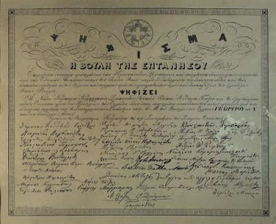 ««Ένωσις εψηφίσθη παμψηφεί άνευ επιφυλάξεως. Απάντησις εγένετο υπό του Κοινοβουλίου εις τον Αρμοστήν. Δοξολογία επίσημος υπό του Μητροπολίτου. Άπειρος ενθουσιασμός.» Με τις παραπάνω φράσεις ανακοινώθηκε στη Β΄ Εθνική Συνέλευση, στην Αθήνα, η απόφαση της ΙΓ΄ Ιονίου Βουλής για ένωση των Επτανήσων με την Ελλάδα, που επισφραγίστηκε με το Ψήφισμα της 23 Σεπτεμβρίου/5 Οκτωβρίου 1863. Στη σημαντική αυτή στιγμή για το εθνικό ενωτικό κίνημα στα Επτάνησα, οι εκλεγμένοι αντιπρόσωποι κλήθηκαν να επικυρώσουν μία ειλημμένη έξωθεν απόφαση, αγνοώντας παντελώς τους όρους υλοποίησης της Ένωσης. Η οριστική απόφαση για την άρση του καθεστώτος της βρετανικής προστασίας και την παραχώρηση των νησιών στην Ελλάδα είχε ληφθεί έναν χρόνο πριν, συγχρονισμένη με την έξωση του Όθωνα και το ζήτημα της διαδοχής στον ελληνικό θρόνο. Αν την προηγούμενη δεκαετία η αποχώρηση της Μ. Βρετανίας από τα νησιά θα σήμαινε, ίσως, πολιτική ήττα της αποικιοκράτιδος και, σίγουρα, ένα κακό προηγούμενο για τις λοιπές κτήσεις της, η νέα συγκυρία στο ελληνικό βασίλειο επέτρεψε την πλέον επωφελή διαχείριση του επτανησιακού ζητήματος, κυρίως, για τη βρετανική διπλωματία αλλά και για τις υπόλοιπες Μεγάλες Δυνάμεις που είχαν συμμετάσχει στη διαμόρφωση του καθεστώτος της προστασίας το 1815. Σε αυτήν την κατεύθυνση, μέχρι και την επίσημη παράδοση των νησιών στον απεσταλμένο της ελληνικής κυβέρνησης, στις 21 Μαΐου/2 Ιουνίου 1864, σειρά διαπραγματευτικών διαδικασιών και διπλωματικών πράξεων αναδεικνύουν το σκεπτικό και τα συμφέροντα των εμπλεκόμενων μερών στην υπάρχουσα συγκυρία, ερμηνεύοντας, έτσι, τους όρους με τους οποίους πραγματοποιήθηκε η Ένωση.