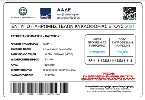 Αναρτήθηκαν στους λογαριασμούς των ιδιοκτητών οχημάτων στο Taxis τα τέλη κυκλοφορίας του 2021 που πρέπει να εξοφληθούν μέχρι το τέλος του έτους.