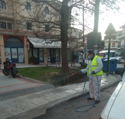 Συγκεκριμένα, απολυμάνθηκαν όλα τα απορριμματοφόρα και τα οχήματα της υπηρεσίας του Πρασίνου και Καθαριότητας του δήμου, καθώς και όλοι οι κάδοι απορριμμάτων και ανακύκλωσης. Επίσης, απολυμάνθηκαν δημόσιοι χώροι όπου παρατηρείται αυξημένη κίνηση όπως, έξω από τράπεζες και φαρμακεία, καθώς επίσης και στα πεζοδρόμια περιμετρικά της πόλης , επί της Γολέμη, και στην Κεντρική Αγορά.