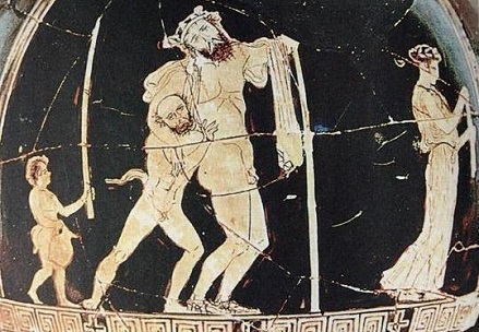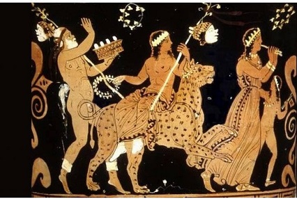 Είναι κοινός τόπος στην λαογραφίας μας πως, οι Απόκριες, έχουν τις ρίζες τους στην Ελληνική Αρχαιότητα και δεν θα μπορούσαν παρά να είναι συνδεδεμένες με τον θεό Διόνυσο! Εδώ ο θεός μεθυσμένος επιστρέφει από ξεφάντωμα και υποβαστάζεται από Σάτυρο…