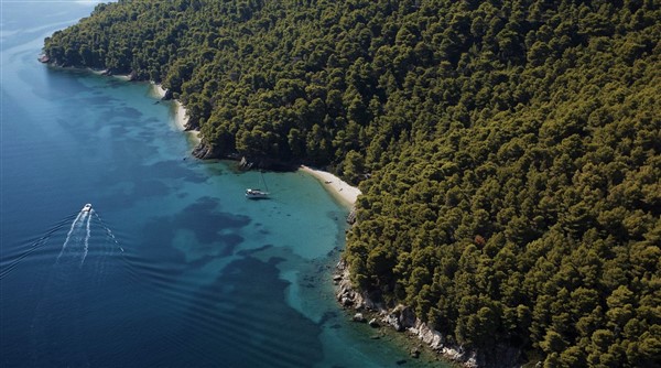Το xαρακτηριστικό πευκόφυτο δάσος του Καλάμου, που φθάνει μέχρι την παραλία