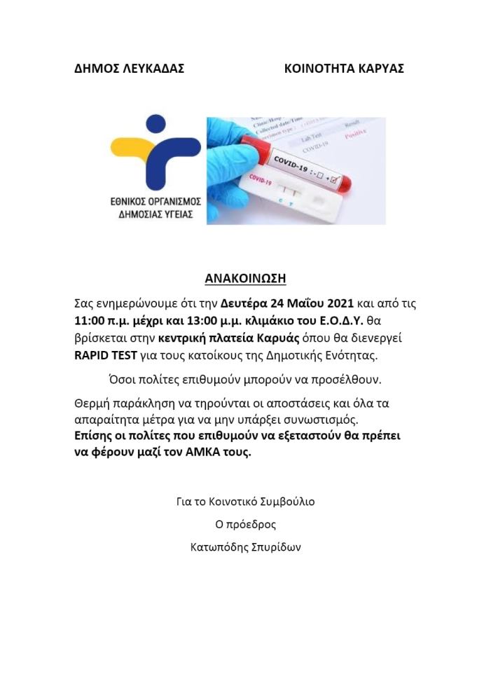 Διενέργεια RAPID TEST στην Κοινότητα Καρυάς την Δευτέρα 24 Μαΐου 2021 Κοινοποιήστε: Μοιραστείτε στο X(Ανοίγει σε νέο παράθυρο) Χ Mοιραστείτε στο Facebook(Ανοίγει σε νέο παράθυρο) Facebook Εκτύπωση(Ανοίγει σε νέο παράθυρο) Εκτύπωση Στείλε ένα σύνδεσμο σε έναν φίλο(Ανοίγει σε νέο παράθυρο) Email Μου αρέσει! Φόρτωση... Δημοσιεύθηκε από i.vl Δείτε όλα τα άρθρα του/της i.vl