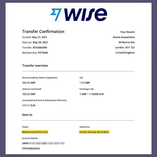 σύλλογο “Ionian Society In London” για την άμεση ανταπόκρισή του στο αίτημά μας και