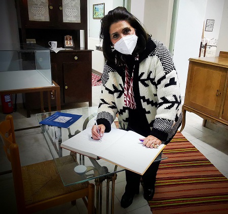 Η κα Κράτσα συνοδευόμενη από τον Αντιπεριφερειάρχη Λευκάδας κο Ανδρέα Κτενά , υπηρεσιακούς παράγοντες της Περιφέρειας Ιονίων Νήσων και τοπικούς παράγοντες ξεναγήθηκε από μέλη του Δ.Σ. του «Απόλλωνα» σε όλους τους χώρους της Στέγης και εξέφρασε τον θαυμασμό της τόσο για τα εκθέματα όσο και για τις δράσεις του Ομίλου μας.