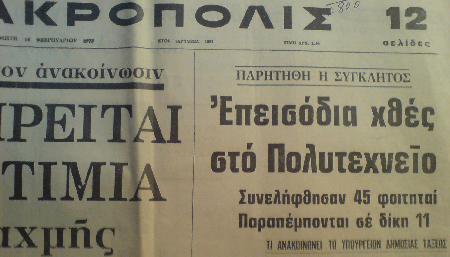 Η πρώτη εισβολή στο Πολυτεχνείο δεν έγινε στις 17 του Νοέμβρη 1973, αλλά στις 14 του Φλεβάρη 1973,