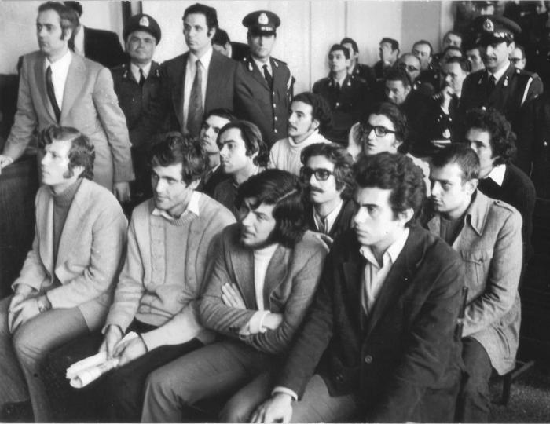 Όρθιος μπροστά αριστερά, διακρίνεται ο μετέπειτα πρόεδρος της Βουλής Απόστολος Κακλαμάνης που ήταν στη δίκη συνήγορος υπεράσπισης των φοιτητών.