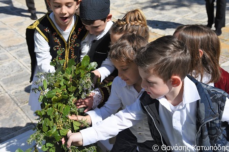 Κρατήθηκε ενός λεπτού σιγή και εψάλλει ο εθνικός ύμνος. Ακολούθησε η μαθητική παρέλαση.