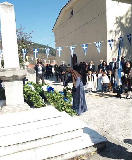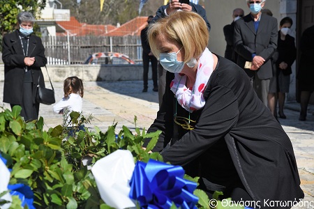 Στη συνέχεια κατατέθηκαν στεφάνια από εκπροσώπους των θεσμικών οργάνων και της κοινωνικής και πολιτικής ζωής του τόπου.
