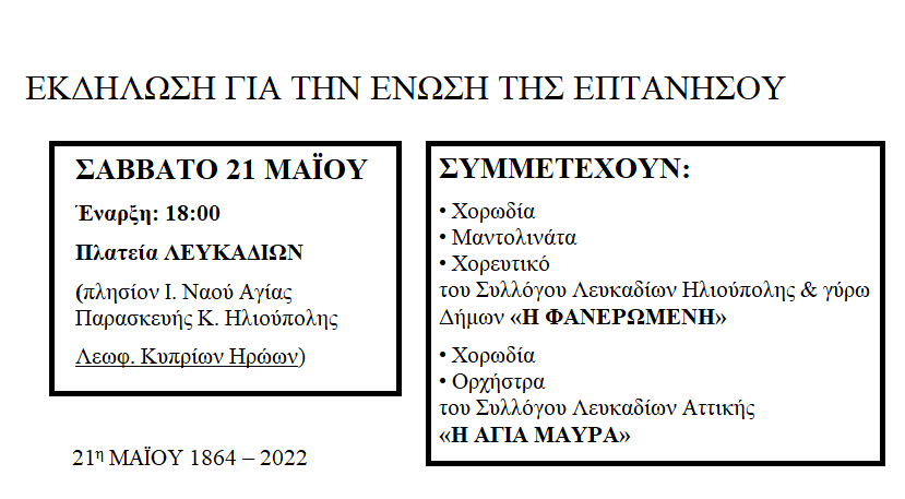ΣΑΒΒΑΤΟ 21 ΜΑΪΟΥ 2022, 18.00, ΠΛ. ΛΕΥΚΑΔΙΩΝ,
