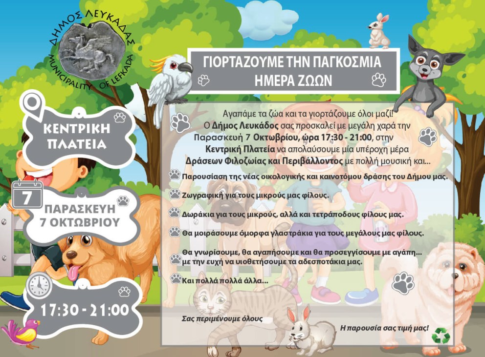Δήμος Λευκάδας: Δράση ΝΟ ΚΑΚΑ για την Παγκόσμια Ημέρα Ζώων ΠΑΡΑΣΚΕΥΗ 7-10-2022 5.30μμ-9.00μμ στην κεντρική πλατεία Κοινοποιήστε: Μοιραστείτε στο X(Ανοίγει σε νέο παράθυρο) Χ Mοιραστείτε στο Facebook(Ανοίγει σε νέο παράθυρο) Facebook Εκτύπωση(Ανοίγει σε νέο παράθυρο) Εκτύπωση Στείλε ένα σύνδεσμο σε έναν φίλο(Ανοίγει σε νέο παράθυρο) Email Μου αρέσει! Φόρτωση... Δημοσιεύθηκε από OlSt Δείτε όλα τα άρθρα του/της OlSt