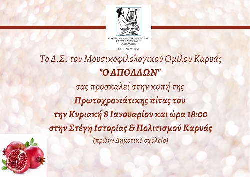 σας προσκαλεί στην κοπή της Πρωτοχρονιάτικης πίτας του