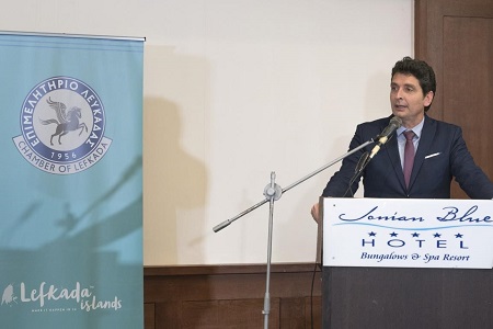 Ο Πρόεδρος στον χαιρετισμό του μετέφερε τις ευχές από το Δ.Σ. και ακολούθως, αναφέρθηκε στο ρόλο και τις δράσεις του Επιμελητηρίου . Ανακοινώθηκε και επίσημα η συνεργασία του Επιμελητηρίου με τη Συνομοσπονδία Τουριστικών Πρακτόρων Ελλάδας Fedhatta για τη διαφημιστική προβολή της Λευκάδας σε πάνω από 1000 τουριστικούς πράκτορες σε Γερμανία και Αυστρία. Αναφέρθηκε στη επαναλειτουργία του σχολείου τουρισμού αλλά και σε αρκετές εκδηλώσεις τουριστικής προβολής που θα προβεί ο φορέας το προσεχές διάστημα. Ο κύριος Σκιαδαρέσης κάλεσε τους τοπικούς φορείς σε συνεργασία για την ανάδειξη αναπτυξιακών ζητημάτων και θεμάτων που αφορούν την επιχειρηματικότητα όπως η εκ νέου δημιουργία της Αναπτυξιακής Εταιρείας στο νησί μας για την αυτόνομη διαχείριση των προγραμμάτων Leader.