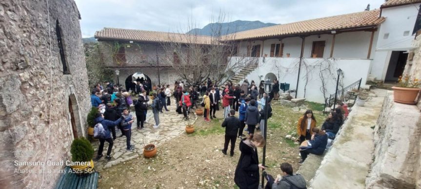 Πριν το πέρας της Θείας Λειτουργίας έγινε αναφορά στην προσωπικότητα και το έργο των τριών μεγάλων πατέρων της Εκκλησίας μας και στην τεράστια προσφορά τους στην παιδεία και τα γράμματα. Στη συνέχεια, δόθηκε σε όλους μοναστηριακό κέρασμα στο Αρχονταρίκι της Ιεράς Μονής. Μάλιστα διδάσκοντες και διδασκόμενοι είχαν την ευκαιρία να ξεναγηθούν στους χώρους της Ι. Μονής αλλά και να απολαύσουν παράλληλα την άγρια ομορφιά του τόπου.
