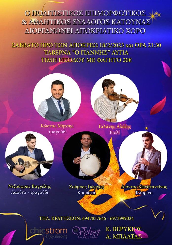 Ο ΠΟΛΙΤΙΣΤΙΚΟΣ ΕΠΙΜΟΡΦΩΤΙΚΟΣ & ΑΘΛΗΤΙΚΟΣ ΣΥΛΛΟΓΟΣ ΚΑΤΟΥΝΑΣ ΔΙΟΡΓΑΝΩΝΕΙ ΑΠΟΚΡΙΑΤΙΚΟ ΧΟΡΟ