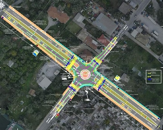 Διαμόρφωση κυκλικού κόμβου μιας λωρίδας κυκλοφορίας στη διασταύρωση των οδών Αναπαύσεως και Φιλοσόφων της πόλης, στο ύψος του κοιμητηρίου.