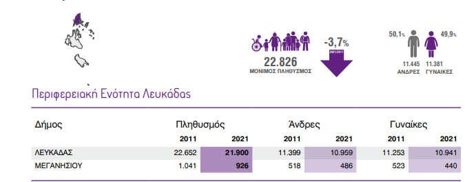 Αναλυτικά τα αποτελέσματα που προέκυψαν από την Απογραφή Πληθυσμού − Κατοικιών 2021, σχετικά με τον Μόνιμο Πληθυσμό, σε κάθε χωριό της Λευκάδας: