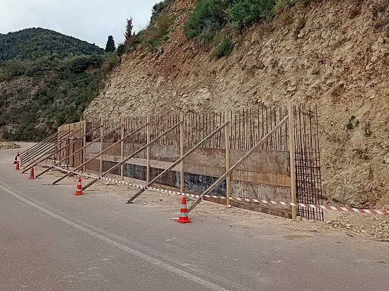 Ήδη πραγματοποιείται η καθαίρεση και απομάκρυνση σαθρών βραχομαζών και καταπτώσεων, ενώ έχει ξεκινήσει και η κατασκευή νέου τοίχου αντιστήριξης οπλισμένου σκυροδέματος μήκους έως 30 m και ύψους έως 4,50 m, επί του οποίου θα τοποθετηθεί μεταλλική βραχοπαγίδα (φράκτης συγκράτησης βραχομάζας). Επιπλέον, θα κατασκευαστούν τάφροι απορροής των ομβρίων σε διάφορα σημεία του δρόμου, ενώ θα γίνει αποκατάσταση καθιζήσεων του οδοστρώματος, με δάπεδα σκυροδέματος οπλισμένα με πλέγμα.
