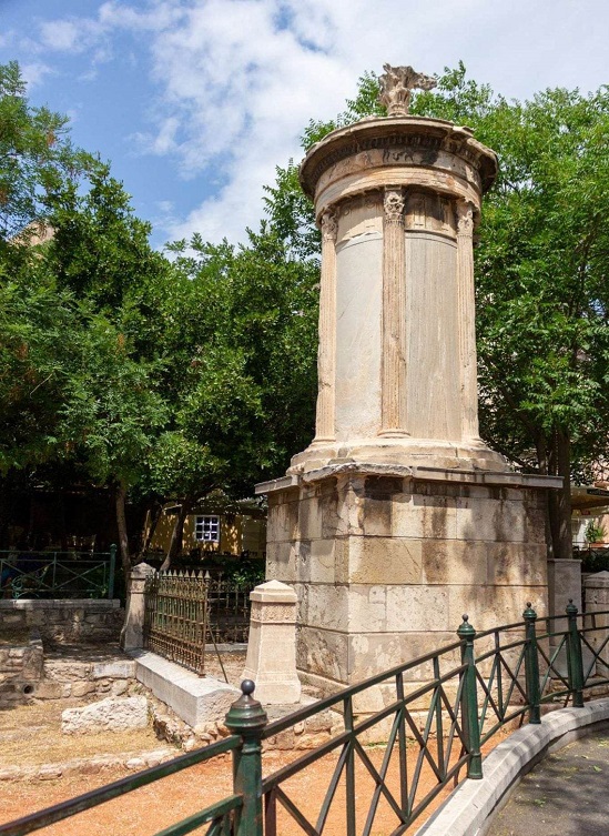 Μπαίνουμε στην οδό Τριπόδων και φτάνουμε στην πλατεία Λυσικράτους όπου υπάρχει το μνημείο Λυσικράτους,γνωστό σαν » Φανάρι του Διογένη».