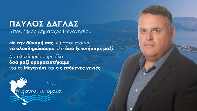 Με απόλυτη επίγνωση της ευθύνης, με οδηγό τις αξίες και τις αρχές μου και μόνο κίνητρο μου την αγάπη μου για το Μεγανήσι, θέτω εκ νέου τον εαυτό μου στην κρίση σας και στην διάθεσή σας, ώστε με την στήριξή σας, ο τόπος μας να συνεχίσει να πορεύεται σε αναπτυξιακή τροχιά.