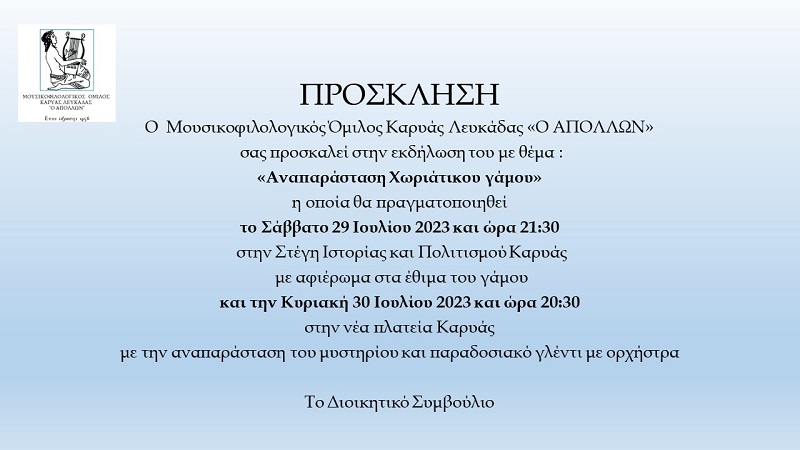 Ο Μουσικοφιλολογικός Όμιλος Καρυάς Λευκάδας «Ο ΑΠΟΛΛΩΝ»