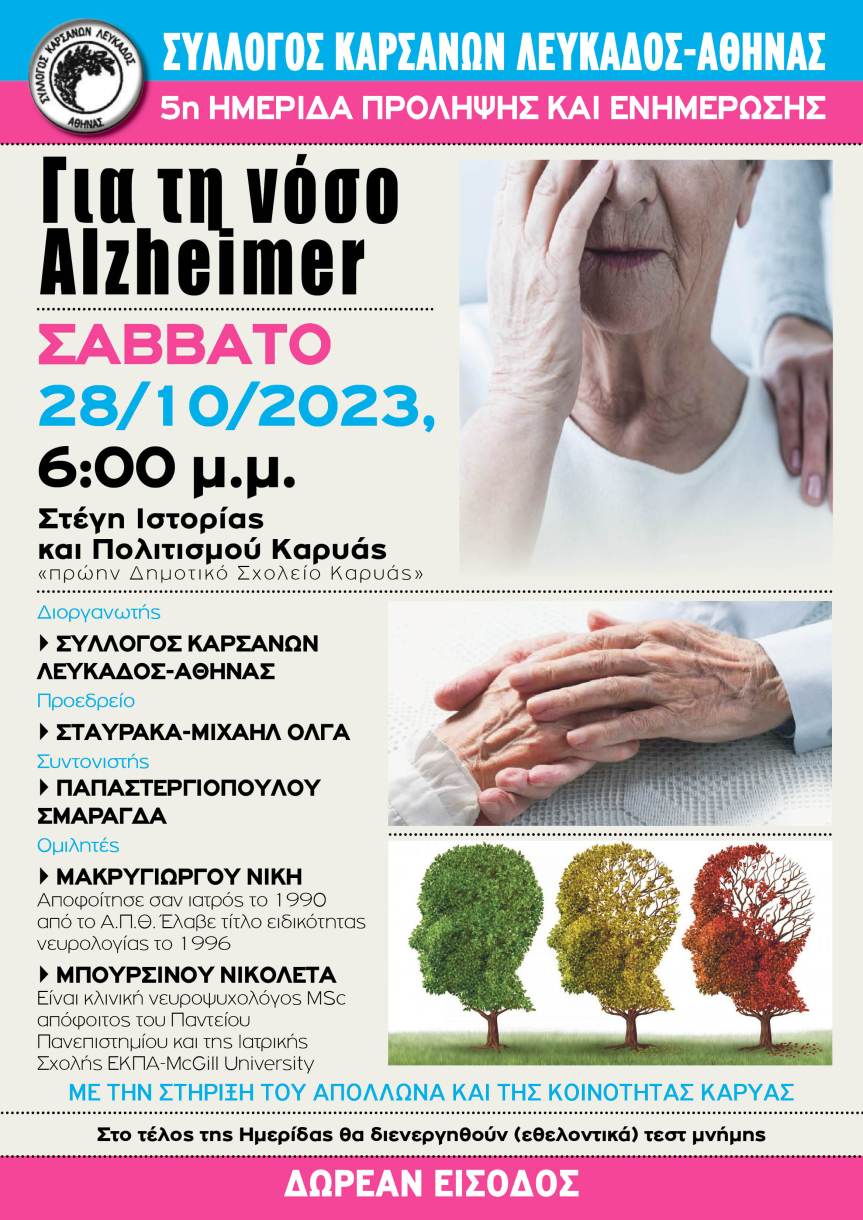 Στο τέλος της Ημερίδας θα διενεργηθούν ( εθελοντικά ) τεστ μνήμης.