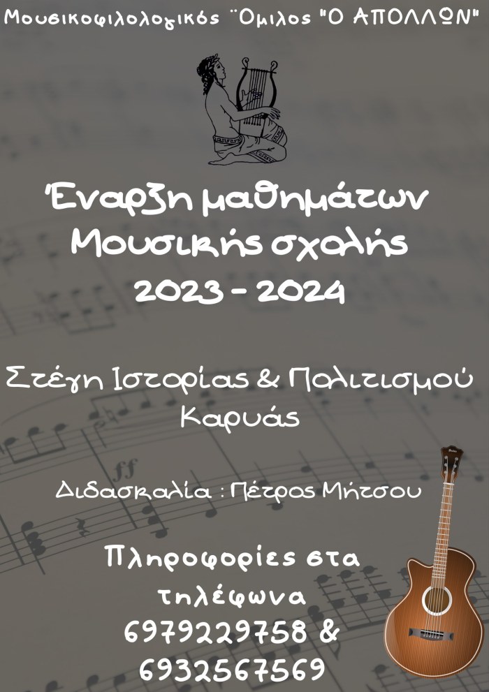 Έναρξη μαθημάτων Μουσικής σχολής 2023- 2024