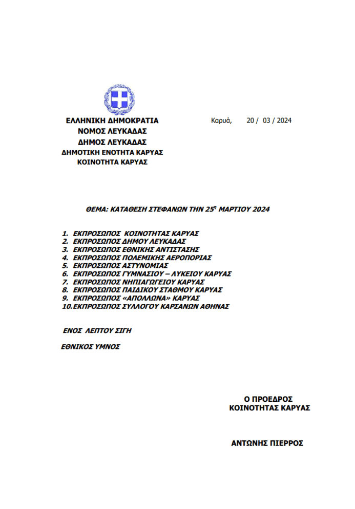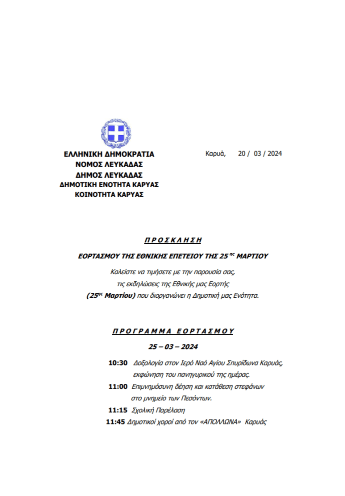 ΠΡΟΓΡΑΜΜΑ ΕΟΡΤΑΣΜΟΥ 25 – 03 – 2024
