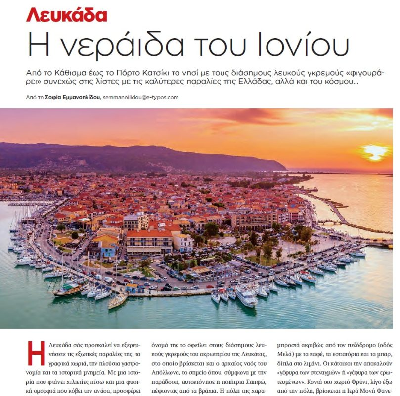 Το Επιμελητήριο Λευκάδας συνεχίζει τις συντονισμένες προσπάθειες για την τουριστική προβολή του νησιού μας, με καταχωρήσεις στον πολυτελή τουριστικό οδηγό TRAVEL του Ιουνίου και στο QUATTRORUOTE Αυγούστου ως ένθετα περιοδικά με τον Ελεύθερο Τύπο της Κυριακής.