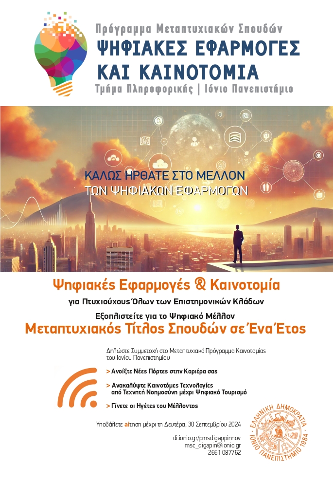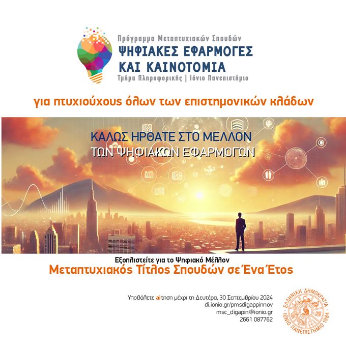 Ανοίγουν οι Υποβολές για το Μεταπτυχιακό Πρόγραμμα Ψηφιακών Εφαρμογών και Καινοτομίας του Ιονίου Πανεπιστημίου