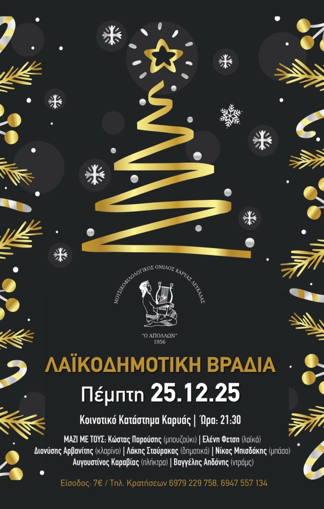 Την Πέμπτη 25 Δεκεμβρίου και ωρα 21:30 ο Ομιλος μας διοργανώνει