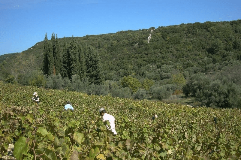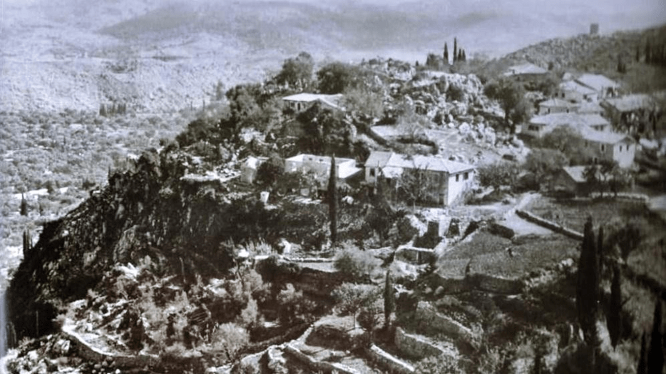 Φωτογραφία μιὰ πλευρὰ τῆς Καρυᾶς Λευκάδος τὸ 1909 (ὑψόμετρο 850μ.).